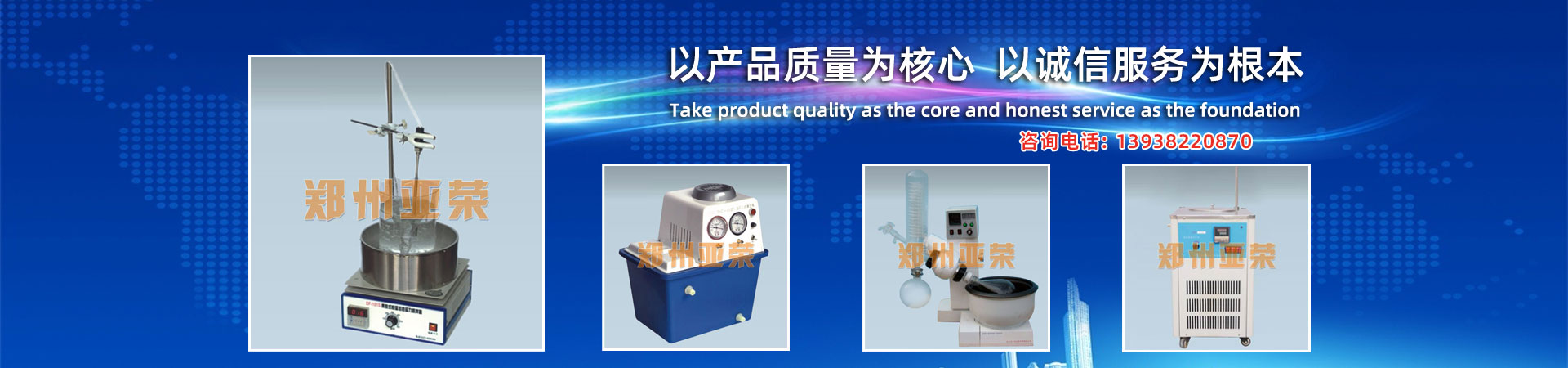 鄭州市亞榮儀器有限公司是主要銷售教學儀器的專業廠家,主要生產旋轉蒸發儀雙層玻璃反應釜旋轉蒸發器循環水真空泵、玻璃儀器氣流烘干器低溫冷卻液循環泵真空抽濾器、電熱鼓風干燥箱、真空干燥箱、水熱合成反應釜、高壓反應釜、數顯恒溫電熱套、高溫油浴鍋、磁力攪拌器、超聲波清洗器、水(油)浴鍋、冷凍干燥機、智能玻璃恒溫水浴、水槽,臺式高速離心機、紫外分析儀、控溫儀、振蕩器、微波化學反應器、顯微熔點測定儀、聚四氟乙烯攪拌棒、攪拌塞、攪拌子、升降臺等多種型號的教學儀器。